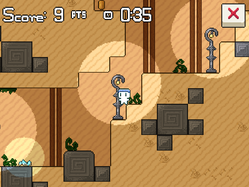 Choose one of three different levels and race against the clock. Coins give you 1 point, while diamonds give 10. Your score will be saved and you can view your past runs in the score menu.